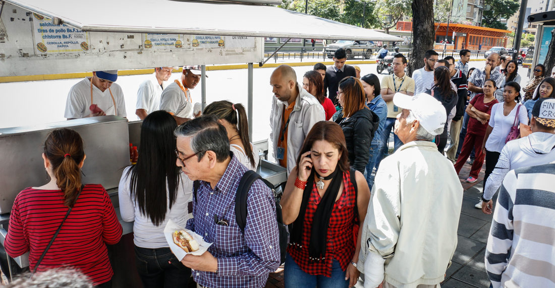 Una de las opciones más económicas se encuentra al frente de La Estancia en Altamira, donde en un puesto de perro caliente se observan largas filas de personas que aprovechan la oferta de Bs 70.000.