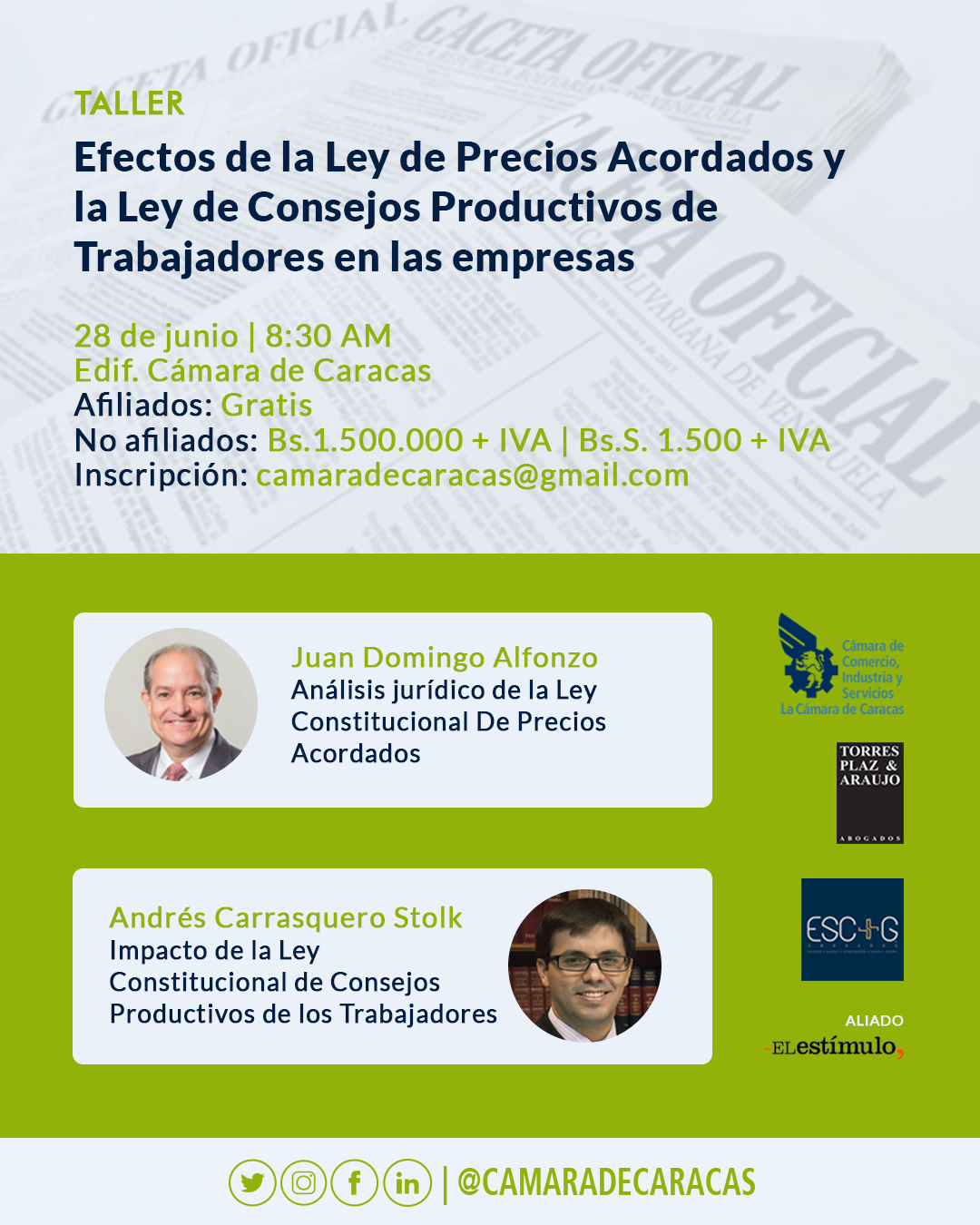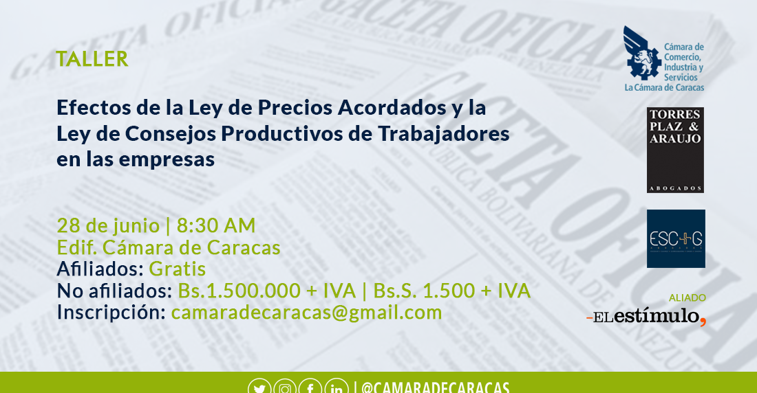 – No afiliados: Bs. 1.500.000 + IVA | Bs. S. 1.500 + IVA