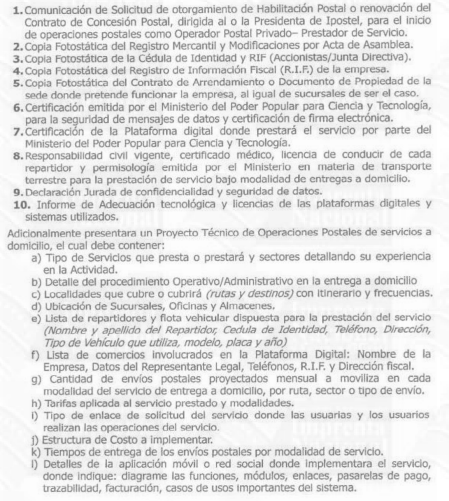 La habilitación postal de Ipostel es el requisito para seguir operando como delivery en Venezuela. Estos son los requisitos que se deben consignar para conseguir la licencia y el precio a pagar