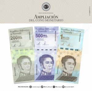 «Las nuevas piezas de Bs. 200 mil, 500 mil y de 1 millón comenzarán a circular paulatinamente, a partir del 08 de marzo de 2021. Estos nuevos billetes vienen a complementar y optimizar el actual cono monetario, para cumplir con los requerimientos de la economía nacional», dice el comunicado oficial.