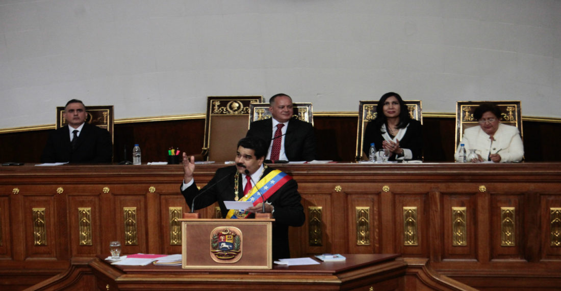 Luego de ofrecer una serie de cifras de inversión social y de señalar que la inflación superó 64% y la contracción económica fue de 3%, el mandatario nacional se refirió este miércoles a su reciente gira por los países de la OPEP y afirmó que «hoy el precio del barril del petróleo cerró en 38 dólares».