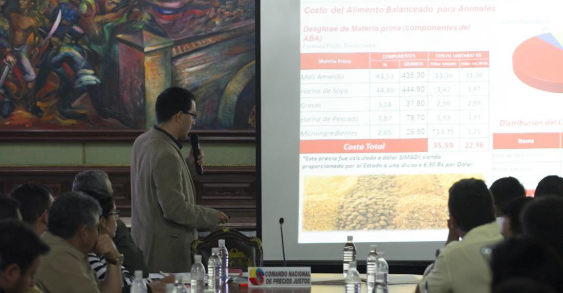 Acompañado por los ministros de Aliemntación, Carlos Osorio y de Agricultura y Tierras, Yván Gil, Arreaza dijo que se reunió con 40 empresas dedicadas a la producción de alimento balanceado para animales, a fin de evaluar las distorsiones presentes en las cadenas productivas y avanzar en el establecimiento de precios justos de estos productos.