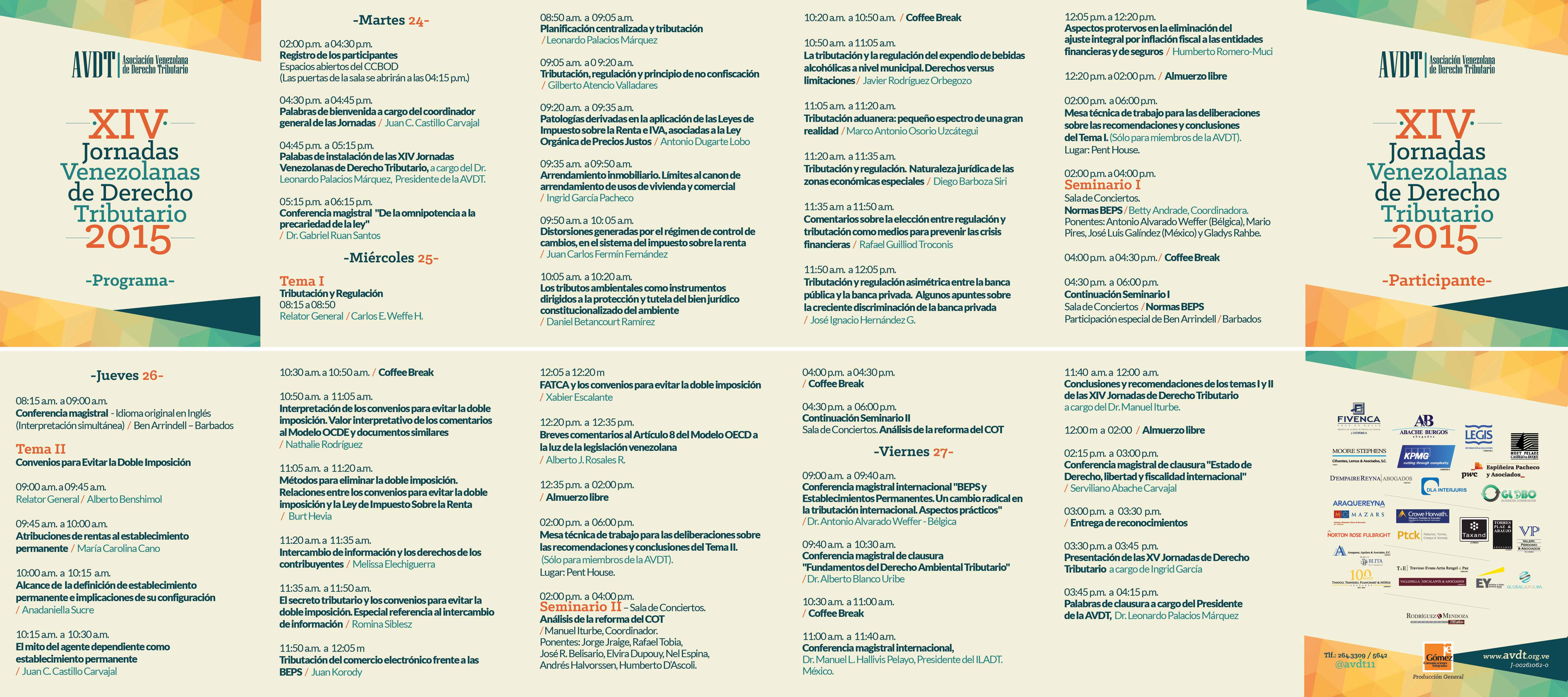 Las distorsiones a la imposición a la renta derivada del control de cambio y las patologías derivadas de la aplicación de las leyes de impuesto sobre la renta y del impuesto al valor agregado, asociadas a la Ley Orgánica de Precios Justos, son algunos de los temas a ser abordados esta semana en las XIV Jornadas Venezolanas de Derecho Tributario.