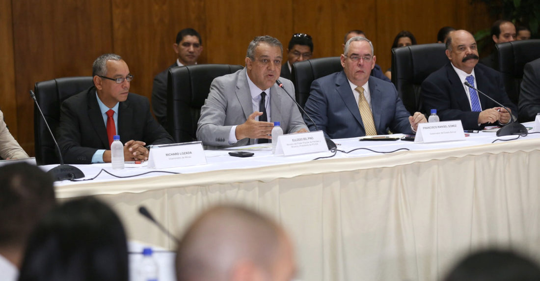 «¿Hasta cuándo?» Se preguntó Merentes, acompañado del ministro de Petróleo y Minería y presidente de Pdvsa, Eulogio Del Pino, quien encabezó la mesa de trabajo del sector minero.