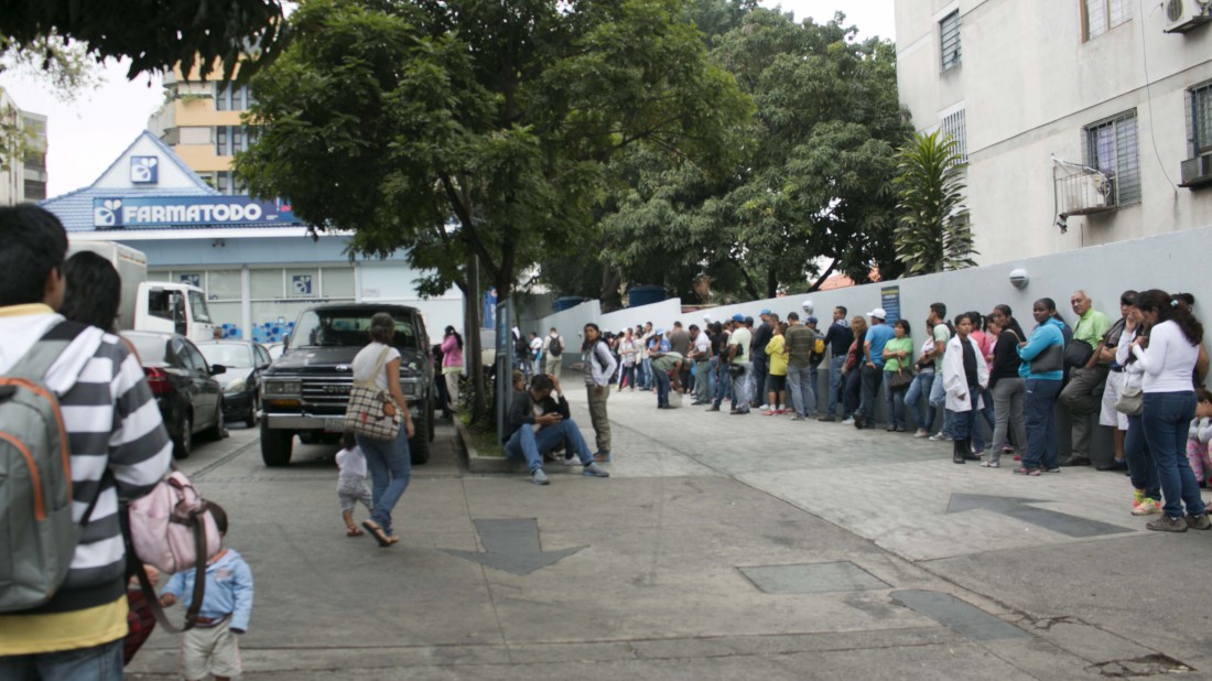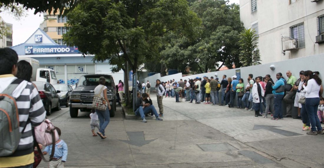 Diversos establecimientos comerciales de Caracas amanecieron este viernes con largas colas que, en algunos casos superan tres cuadras. Mujeres con niños en brazos, ancianos, niños, familias completas esperan a las afueras de supermercados y farmacias a que llegue alguno de los productos regulados desaparecidos del mercado nacional desde hace meses.