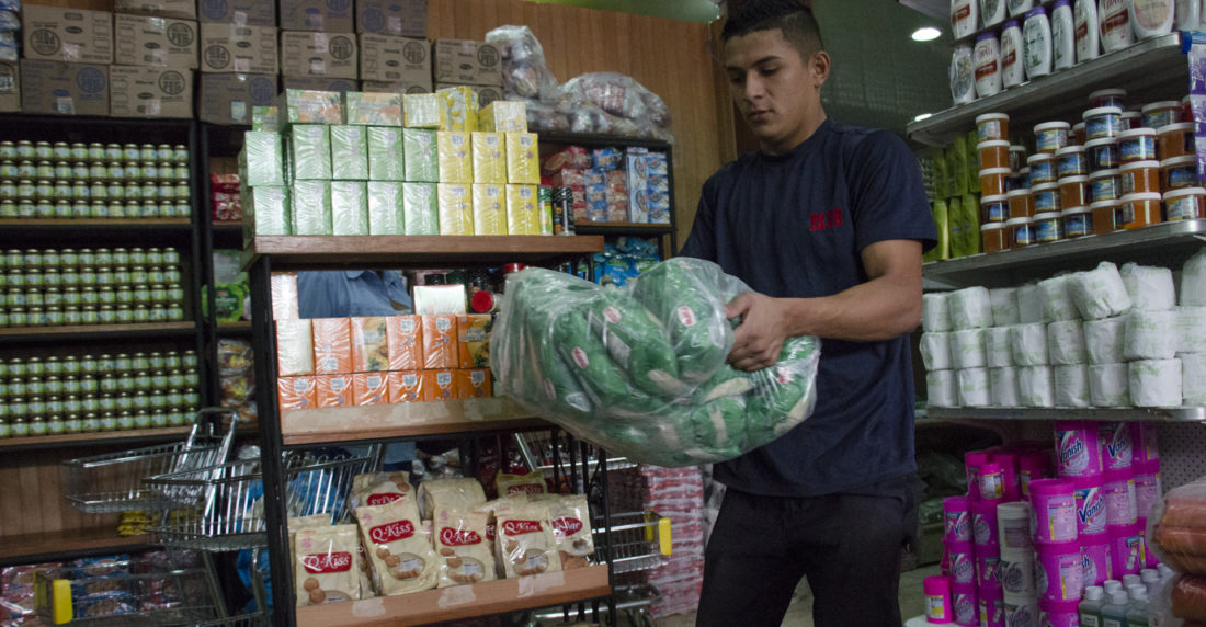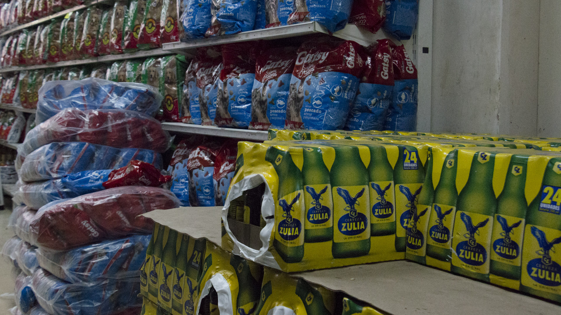 En los supermercados, los venezolanos compran la comida por pacas. A las puertas de un comercio, un funcionario con chaleco de Edelca -ahora Corpoelec- cargaba paquetes de arroz y pasta a una camioneta oficial blanca de la empresa estatal venezolana con placa FBV-96U perteneciente al estado Bolívar.