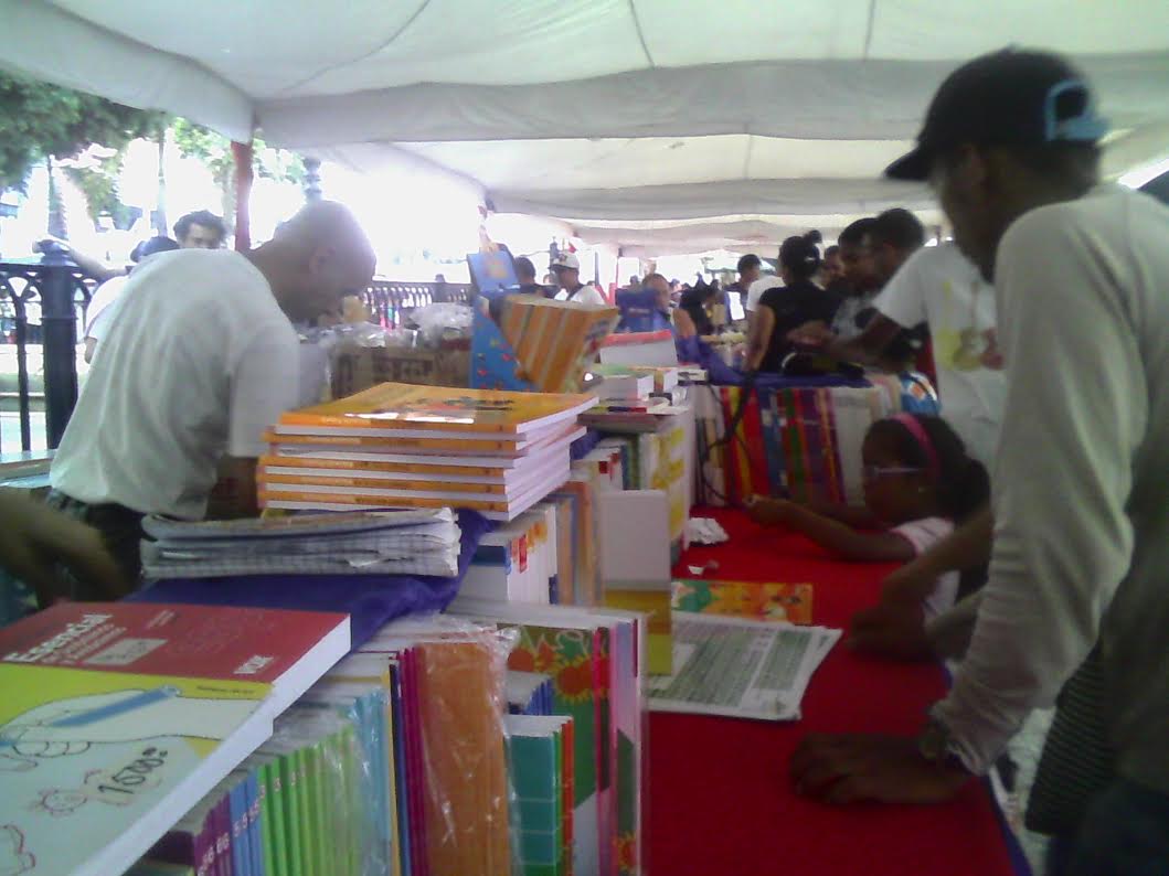 En los alrededores de la plaza Bolívar, hay una feria escolar con varios microempresarios ofreciendo sus productos.