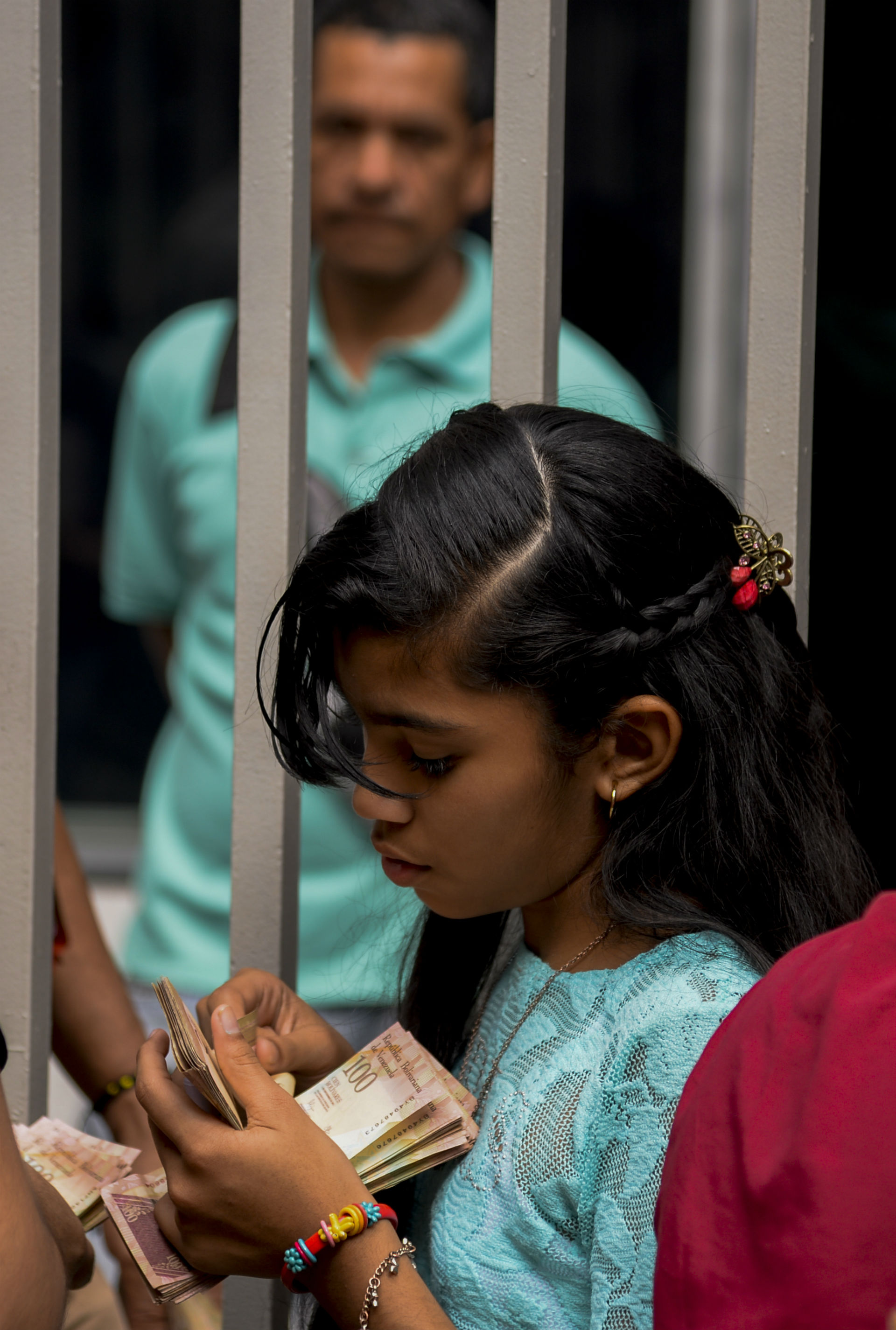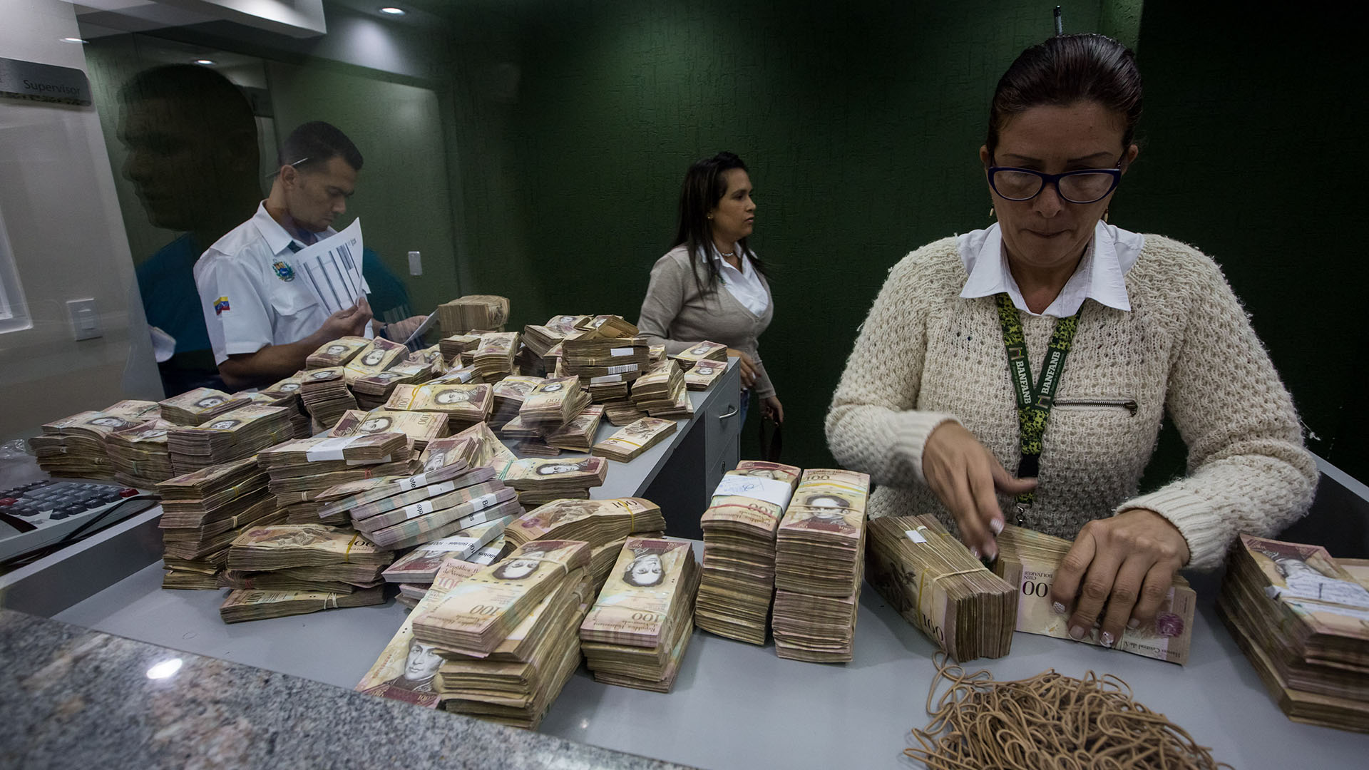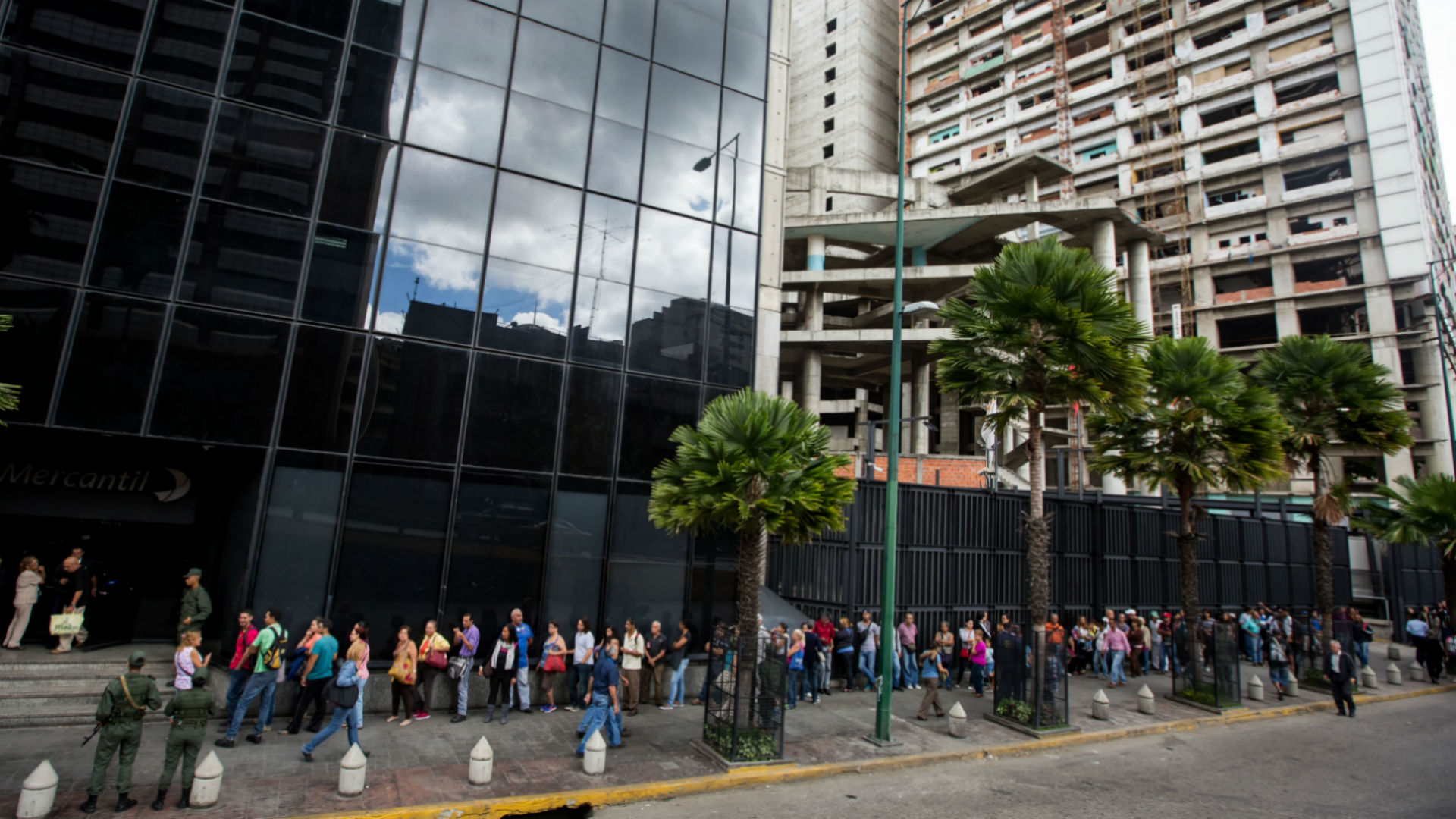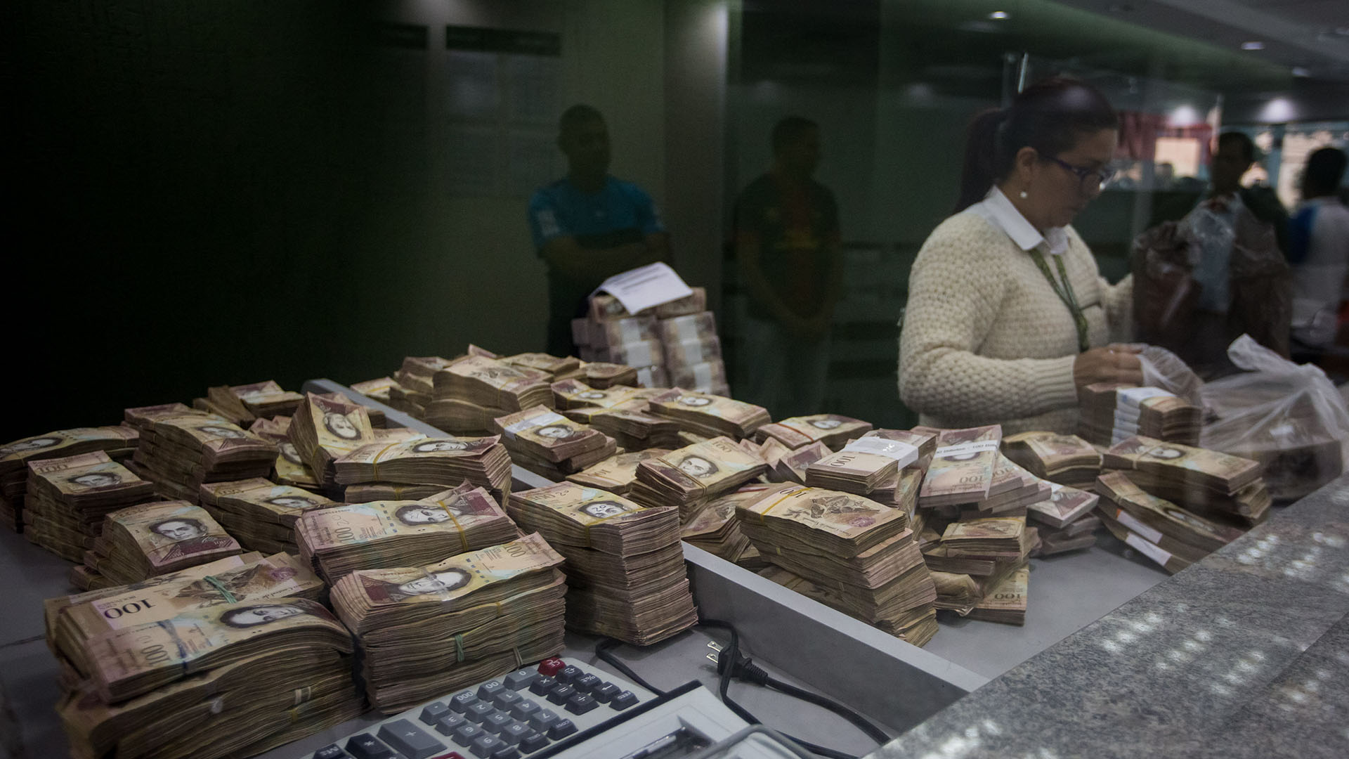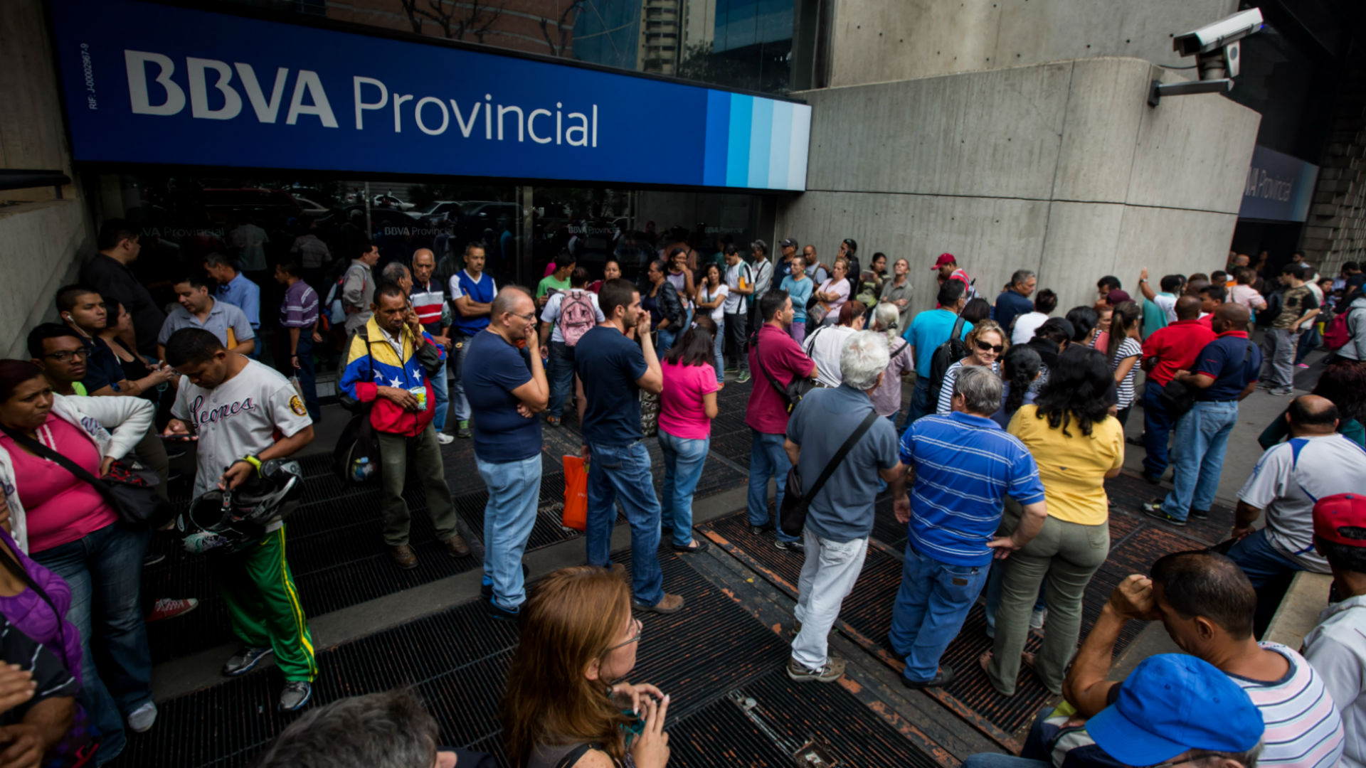 Con bolsos repletos de billetes de Bs 100 y hasta con sombrillas para resguardarse del sol, los ciudadanos esperaban pacientemente entrar este martes a las entidades bancarias para deshacerse de la actual pieza de mayor denominación del cono monetario.