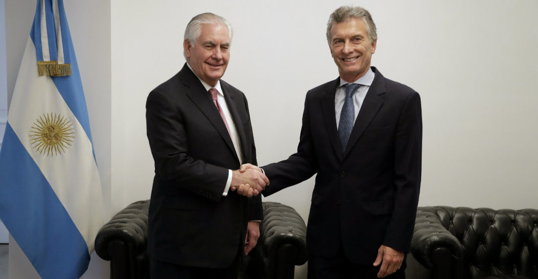 La cita, que duró 40 minutos y en la que también participaron otras autoridades como el jefe de Gabinete argentino, Marcos Peña, el canciller Jorge Faurie y el embajador argentino en Estados Unidos, Fernando Oris de Roa, tuvo lugar en la residencia presidencial de Olivos, en la periferia norte de Buenos Aires, en la tercera y última jornada de visita oficial de Tillerson a Argentina.