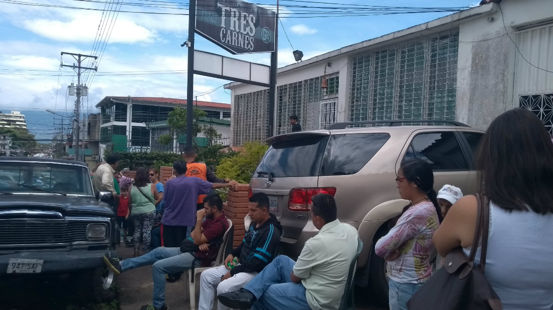 Desde las 5:00 AM se inicia el peregrinaje de muchos, a la caza de un local donde llegue la carne para iniciar la cola y esperar bien entrada la mañana que se inicie la venta de solo cinco kilogramos de carne (variada) por persona a precio regulado de BsS 90 (BsF 9.000.000) por cada kilogramo.