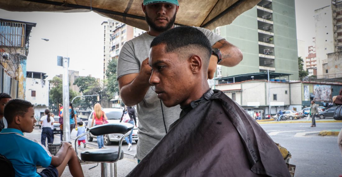 El aumento de las barberías callejeras es un reflejo de la forma que buscan los venezolanos para sobrevivir en un país hiperinflacionario y en recesión.