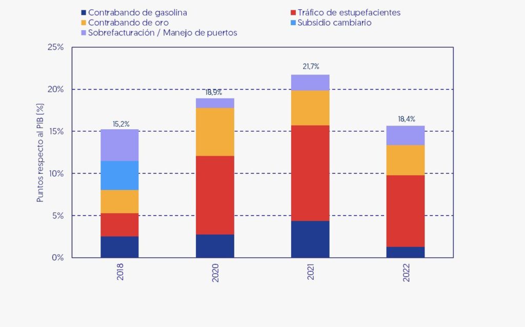 Además, el informe destaca que la renta generada por el contrabando de combustible fue de 760 millones de dólares en 2022, lo que representó una disminución respecto al 2021, año en el que el cálculo de esta cifra fue de 1.900 millones de dólares.