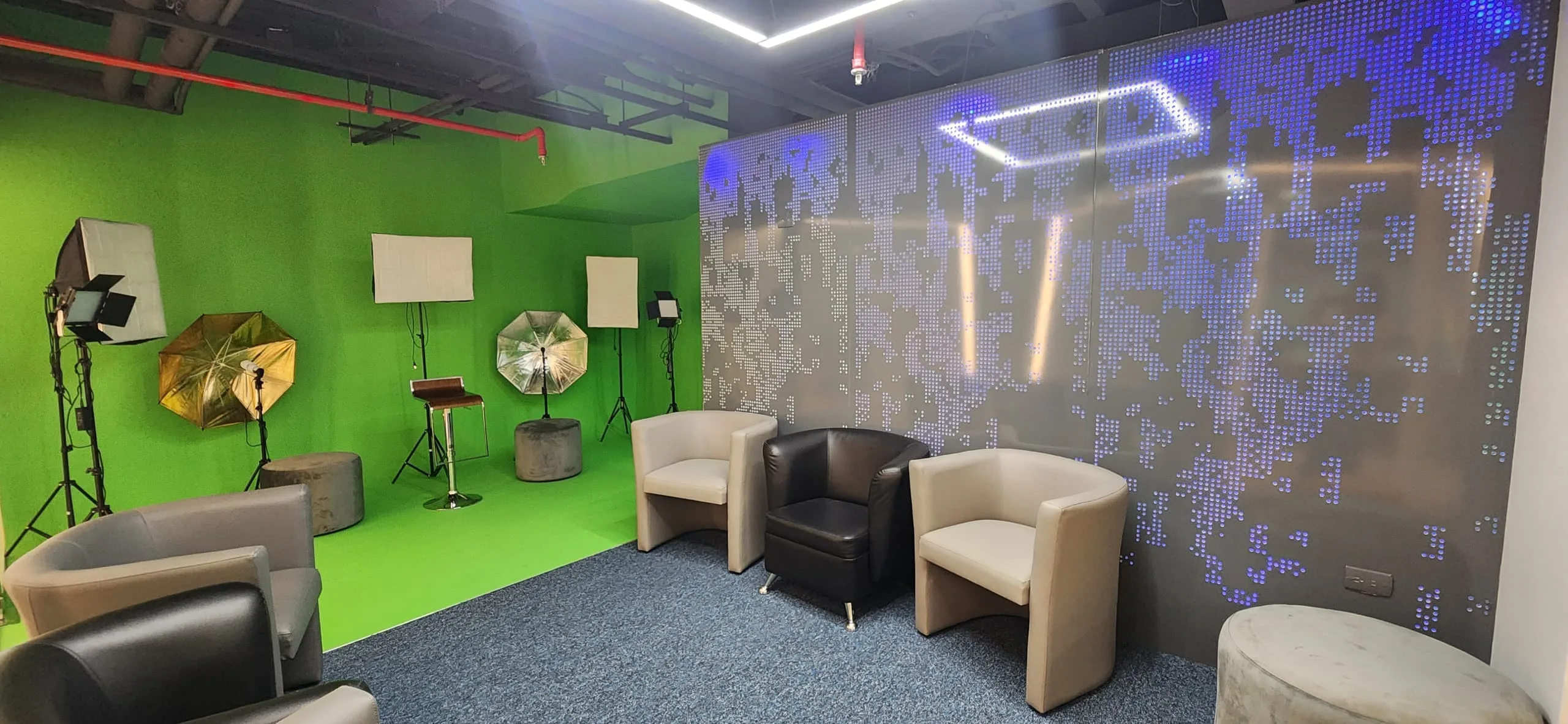 La aceleradora cuenta con un estudio de grabación y podcast, un estudio fotográfico y de televisión, sala de reuniones, auditorio para eventos, escritorios fijos y oficinas privadas.