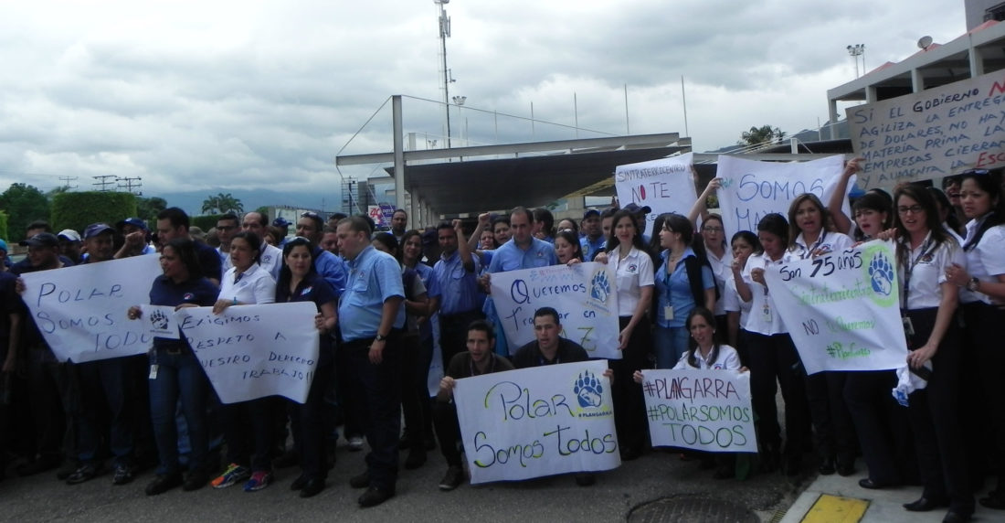 Más de 500 trabajadores de Cervecería Polar estuvieron presentes este lunes en una rueda de prensa que ofrecieron voceros de 15 de los 18 sindicatos que hacen vida en la empresa a nivel nacional para exigir a los representantes sindicales que mantienen paralizadas las plantas y agencias de distribución que les permitan trabajar.