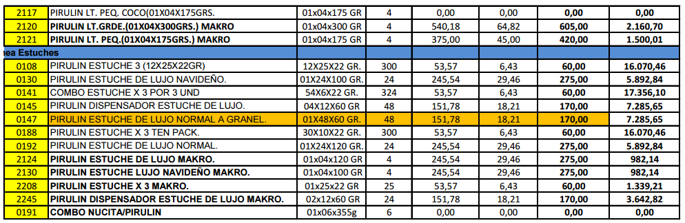 La empresa Nucita venezolana (Nuciven) del grupo Sindoni, basada en el estado Aragua, publicó en su página web los precios que rigen desde septiembre para sus productos Nucita y Pirulín en sus distintas presentaciones.