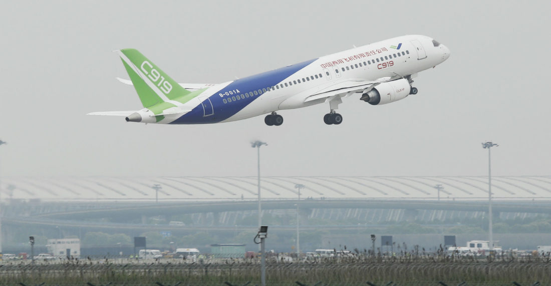 China presenta el C919 como competido del Airbus A320 y el Boeing 737. El vuelo inaugural estaba previsto para 2014 y la entrega a los compradores para 2016, pero sufrió demoras atribuidas a problemas de fabricación. Difícilmente podrá transportar pasajeros antes de 2019.