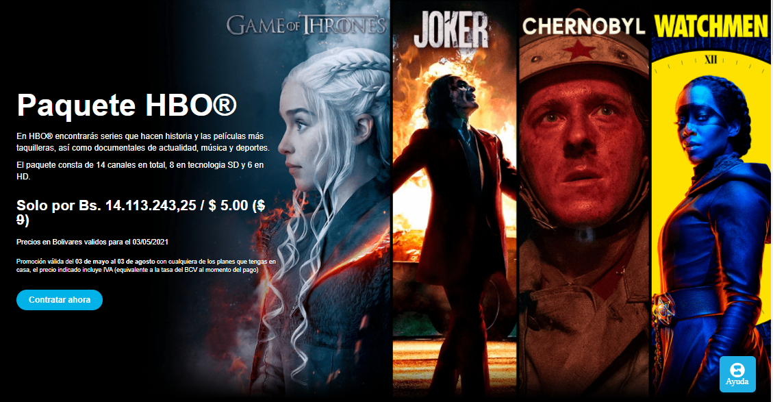 Simple TV anunció ya su primer Paquete Premium HBO. Se trata de un paquete con 14 canales que muchos usuarios esperaban en la parrilla de programación desde que la empresa de televisión satelital vino a sustituir la señal de DirecTV en Venezuela.