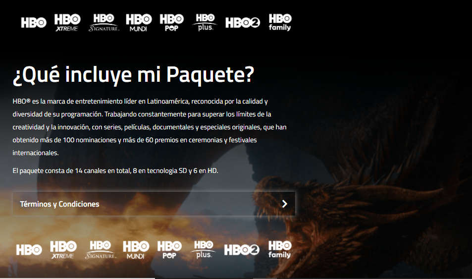 HBO: El canal original de HBO que transmite películas, documentales y series originales de la compañía. Sus producciones han obtenido más de 100 nominaciones y más de 60 premios en ceremonias y festivales internacionales.