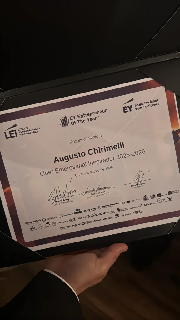 Augusto Chirimelli, fundador y CEO de Flety, la app para agilizar el transporte de carga terrestre, destacó entre los principales líderes tecnológicos que están transformando la economía en Venezuela, recibiendo un reconocimiento en la Gala de Líderes Empresariales Inspiradores (LEI) 2026