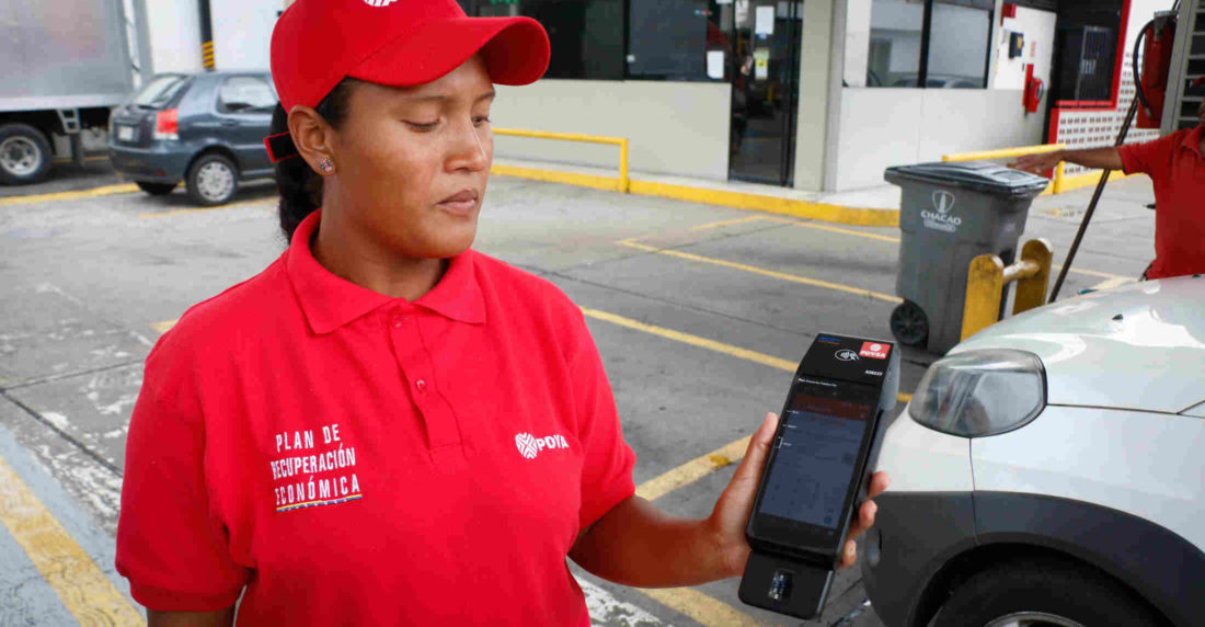 Jóvenes identificados en el plan oficialista Chamba Juvenil se desplegaron por estaciones de servicio ubicadas en el municipio Chacao, en el este de Caracas para instalar este sistema, que ha presentado problemas en los estados fronterizos venezolanos donde se probó por primera vez esta forma de pago.