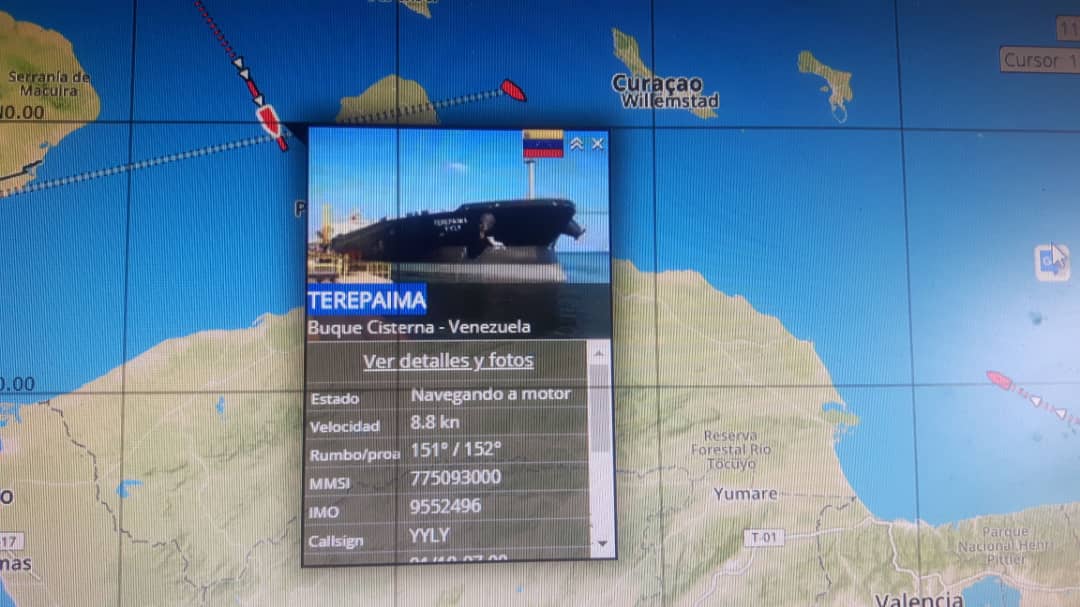 Sin embargo, a través del radar se ve que el buque Terepaima viene desde Cuba.