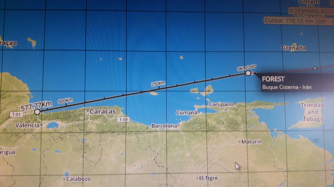 El primero de los tres buques con gasolina, que empezaron hace más de un mes una travesía para llegar a Venezuela, ya se encuentra en aguas nacionales. El buque Forest ingresó al país y se dirige a puerto para descargar el combustible que trae desde Irán.