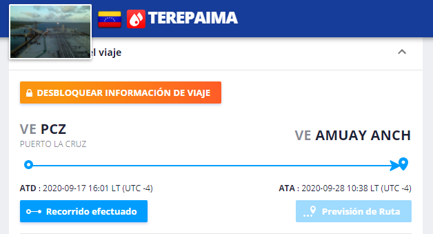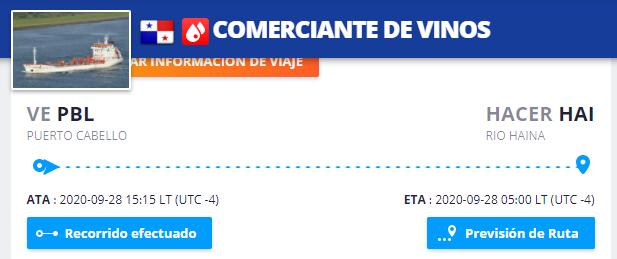 Los movimientos de buques desde y hacia Cuba son constantes. De hecho, los buques venezolanos viajan hasta Cuba y no colocan este registro en la bitácora. Este es el caso del buque Terepaima, un buque con bandera venezolana que en su bitácora de viaje señala que está yendo de Puerto La Cruz hasta la Refinería de Amuay.