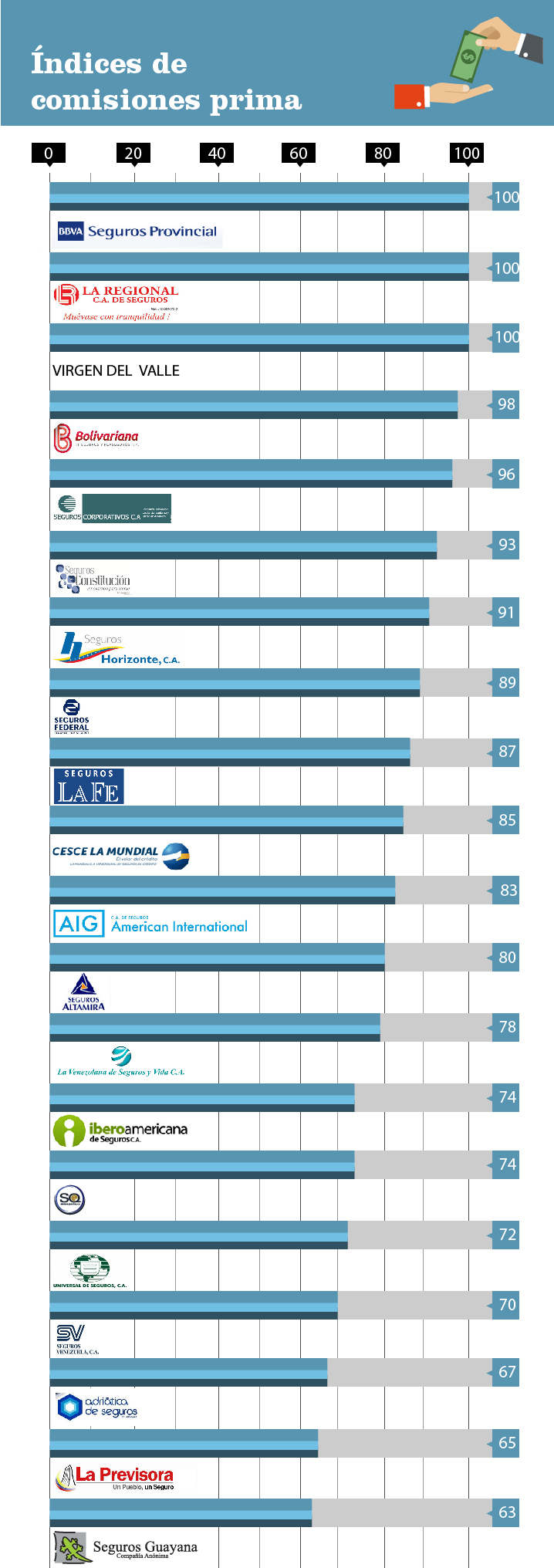Las comisiones se mantienen estables alrededor de 13% del primaje, siendo un factor positivo el decrecimiento en los gastos sobre primas contratadas de 31% a 28%.
