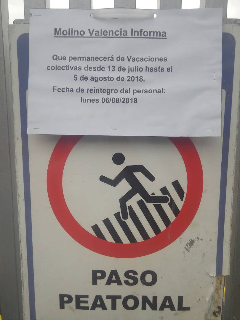 La decisión, que fue calificada como unilateral por los afectados, les tomó por sorpresa y aumenta el malestar entre los empleados que acudieron luego de constatar la situación ante la Inspectoría del Trabajo de Valencia para conocer los términos de esta detención temporal de actividades, pues nadie de la firma salió a informar sobre lo que ocurre y los portones tienen candados que les impiden ingresar a sus puestos.