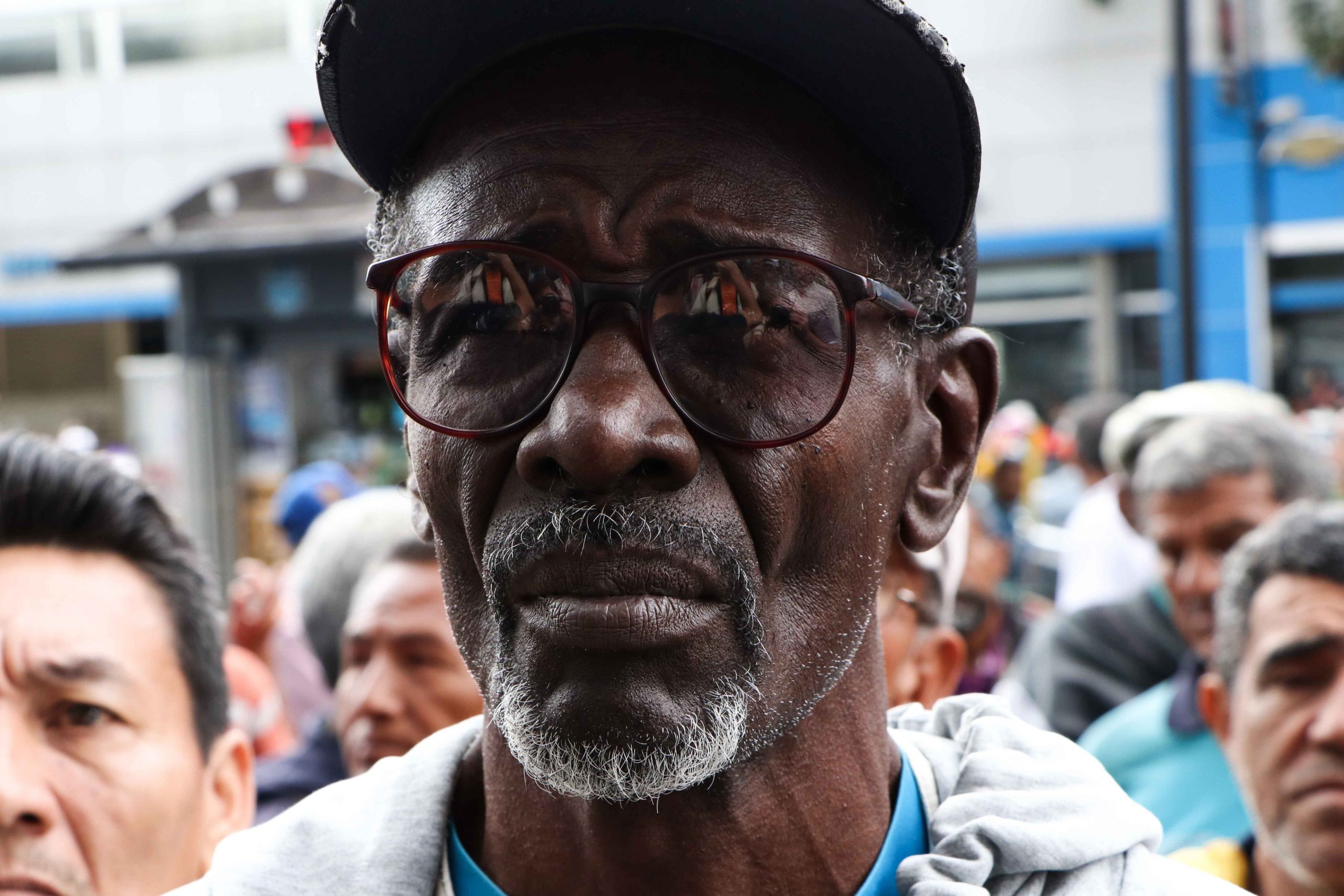 Esta sentado en las escaleras de la Torre HP en Los Palos Grandes, junto a 150 compañeros más que se ven como él, que protestan como él, que esperan como él una indemnización por algo que parece que el gobierno de Maduro olvidó hace mucho tiempo.