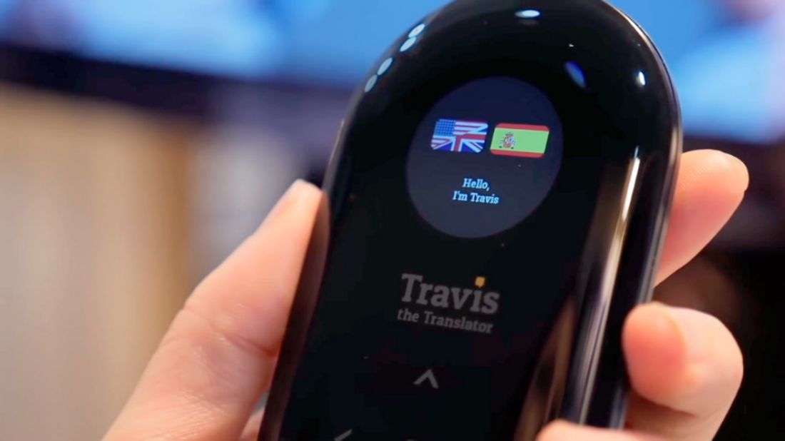 La empresa emergente holandesa Travis presentó unos pequeños audífonos capaces de traducir en tiempo real conversaciones entre personas en diferentes idiomas.