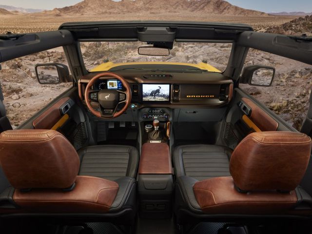 El Bronco 2021 tiene estándar una pantalla central de 8 pulgadas que puede ser mejorada con una de 12 pulgadas y un panel de instrumentos de LCD.