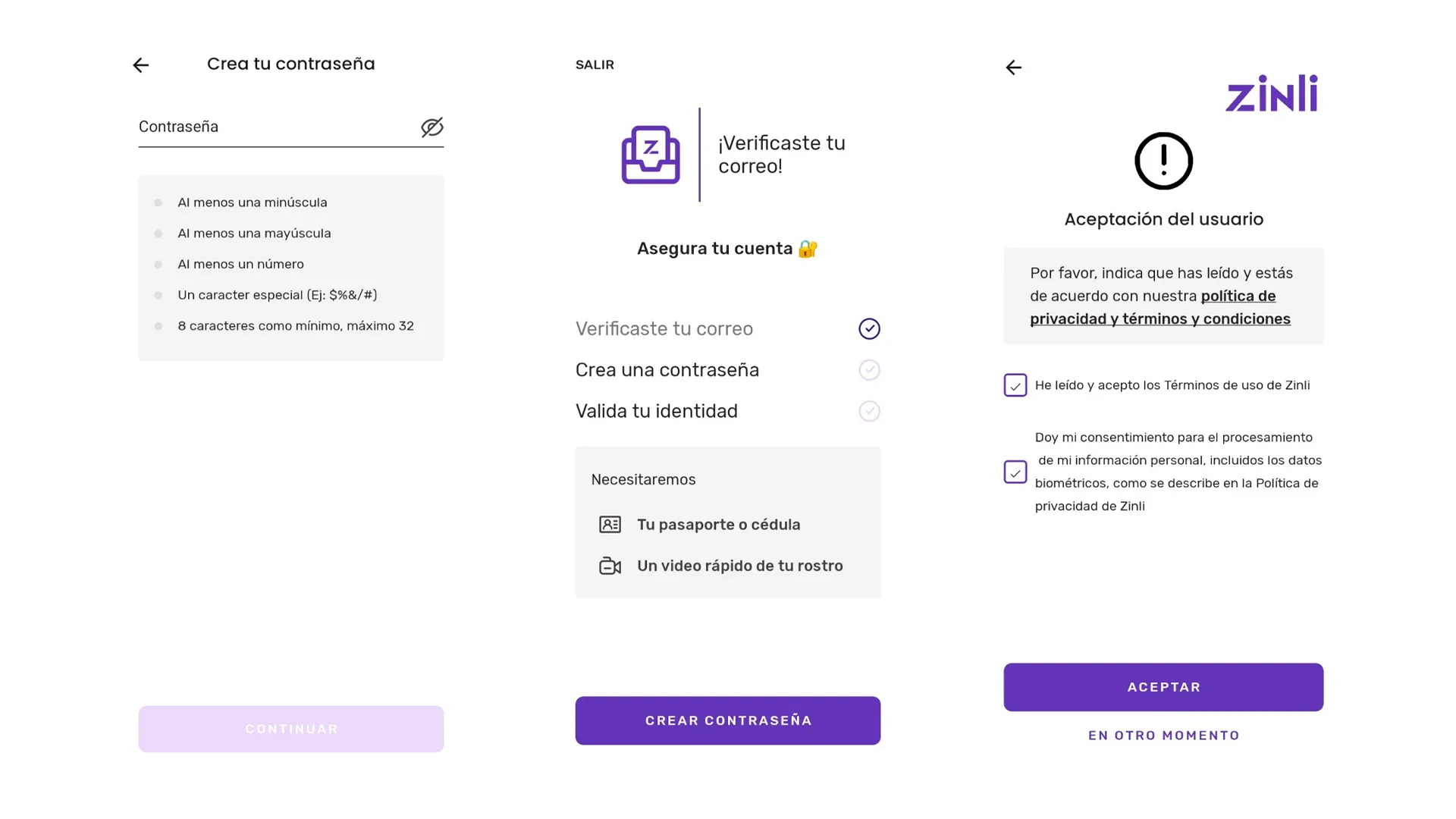 4. Tras confirmar el correo serás redirigido de nuevo a la app para crear una contraseña y validar tu identidad.