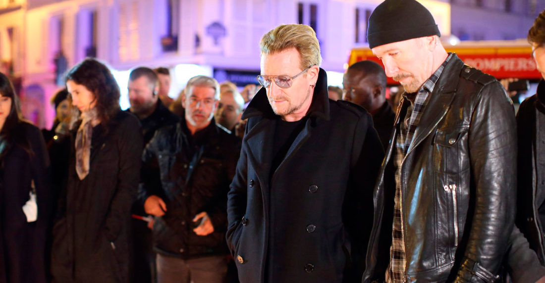 El grupo U2 se recogió en la noche este sábado ante 101 bulevard Richard-Lenoir, en París, donde se llevaba a cabo una velada, en el barrio donde ocurrieron varios ataques. Más tarde el grupo se recogió ante el Bataclan.