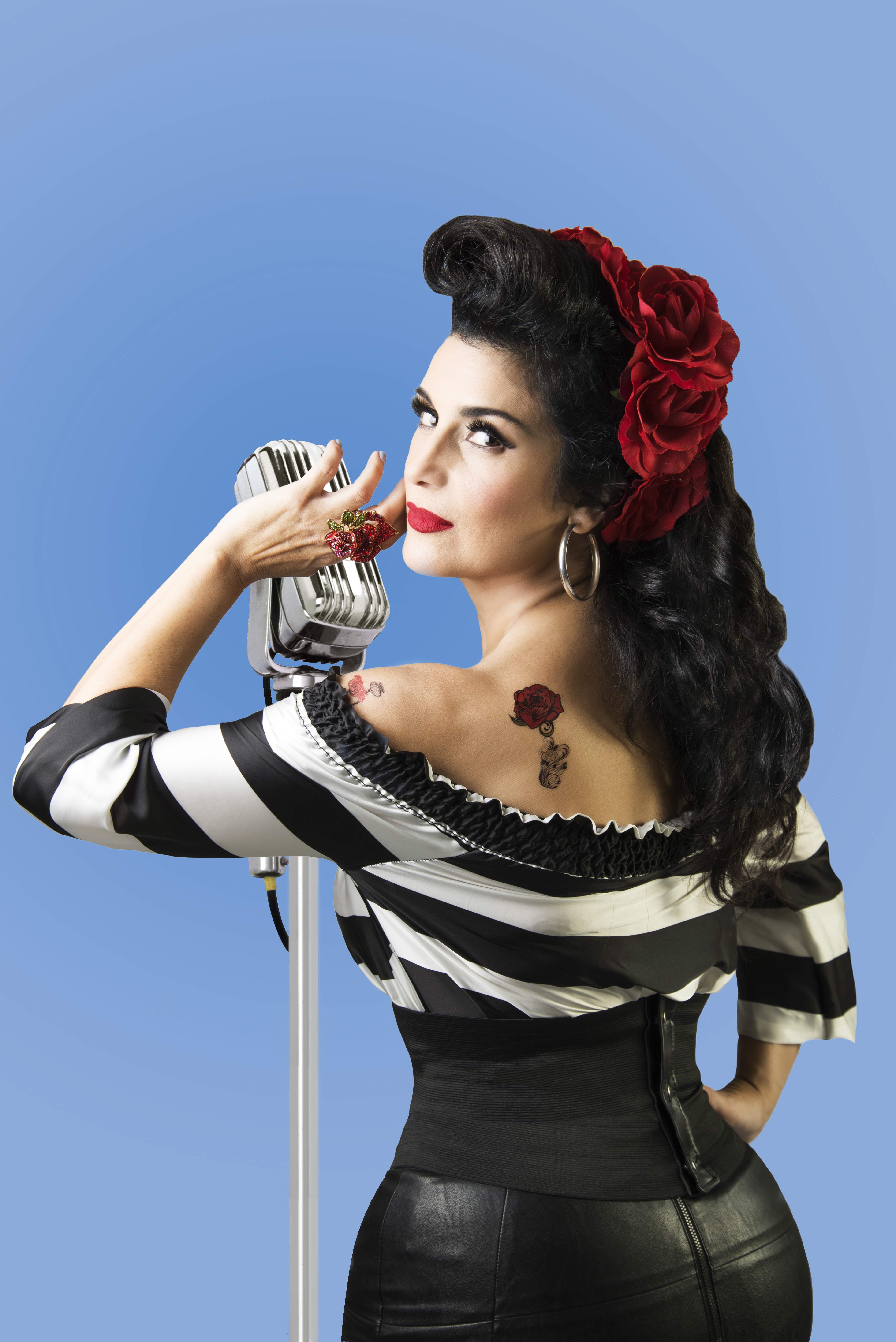 Sugerente y vintage, Karina se vale del estilo Pin-up para la portada de su producción. En ella mezcla ritmos de la música ranchera con el pop que la ha caracterizado, ese que la subió a los escenarios a mediados de los años ochenta y no la ha bajado desde entonces.