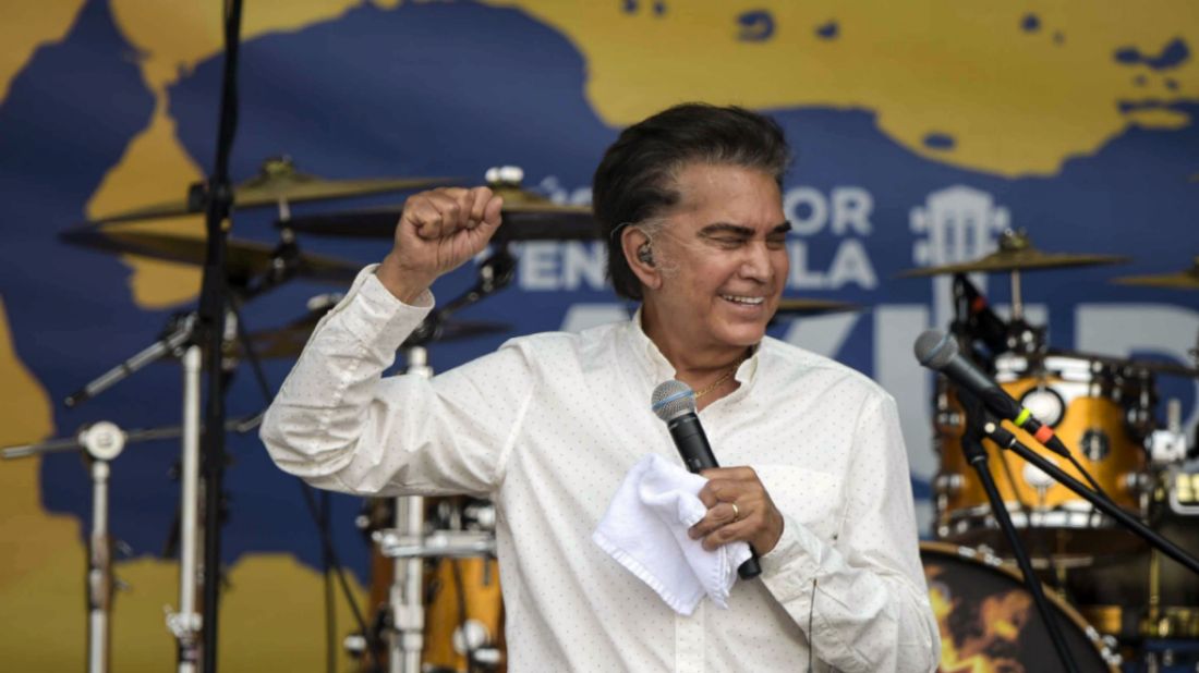 “La muerte no podía llevarme sin ver a mi Venezuela libre. Basta ya de dictadura”, dijo el cantante quien sobrevivió a dos trasplantes de pulmón en 2018. Agradeció a Juan Guaidó, a la Asamblea Nacional y a los políticos de oposición mientras el público gritaba “¡libertad!”.
