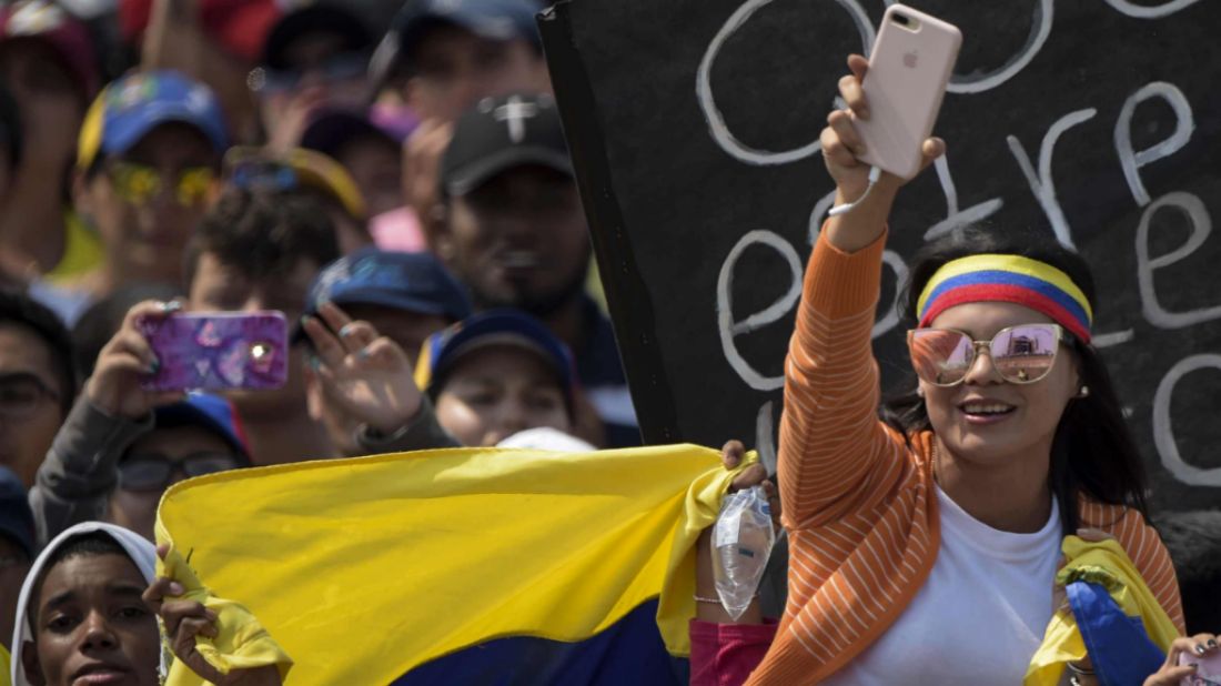 Desde la tarima, se observaban los contenedores dispuestos, y soldados, por el gobierno de Nicolás Maduro para impedir el paso en un puente que nunca ha sido usado pero que ha acaparado la atención mundial.