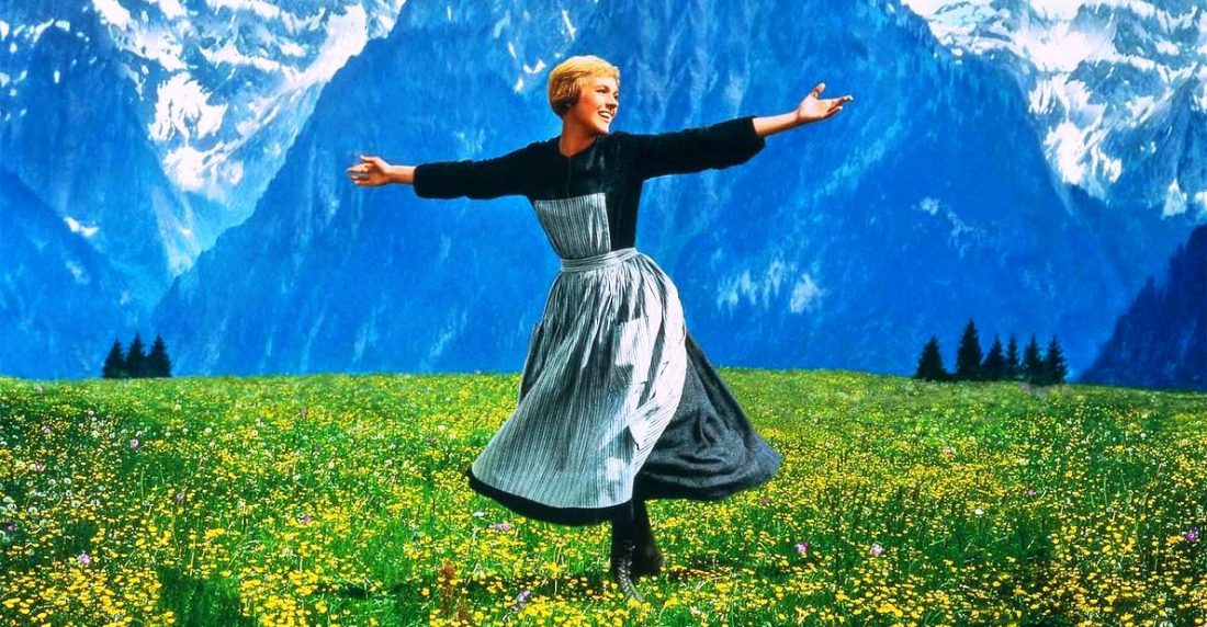 Filmar las escenas en las que aparece corriendo por las colinas de Salzburgo, entrañaban más dificultad de la que aparentaban, principalmente por culpa del helicóptero que la perseguía con una cámara: “Todo lo que tenía que hacer era caminar, girar y respirar. La corriente descendente de las aspas del helicóptero era tan poderosa que a veces me arrojaba al suelo. Me levantaba, escupía barro y hierba, me sacudía el vestido y volvía a mi posición inicial”, cuenta.