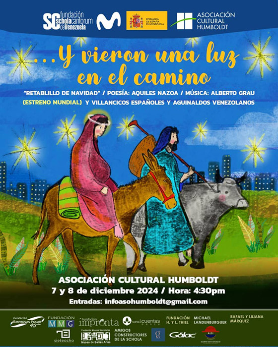 Este montaje de «…y vieron una luz en el camino» se presentará en el teatro de la Asociación Cultural Humboldt el sábado 7 de diciembre a las 4:30 p.m. y el domingo 8 a las 4:30 a.m., gracias al patrocinio de la Embajada de España en Venezuela y Movistar.