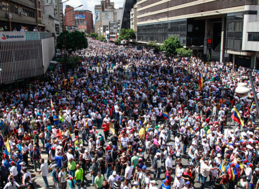 Minutos antes de que el presidente de la Asamblea Nacional (AN), Juan Guaidó, se juramentara frente a un mar de gente que lo vitoreaba y apoyaba, manifestantes en el Distribuidor Altamira se disponían a voltear un camión cerca de unos cauchos encendidos. Con la falsa alarma de “ahí vienen”, quienes protestaban corrieron del lugar, pero por la Avenida Libertador venía otro grupo con sonrisas y gritos de “¡Tenemos presidente!”