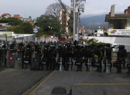 Barricadas fueron levantadas en distintos puntos de San Cristóbal luego del enfrentamiento entre cuerpos policiales y militares con encapuchados, en las inmediaciones del Concejo Nacional Electoral (CNE) en Táchira. Las brigadas antimotines de la policía habían usado bombas lacrimógenas y perdigones para dispersar a la multitud que llegó desde tres puntos de la ciudad gritando consignas y exigiendo “elecciones generales, ya”.