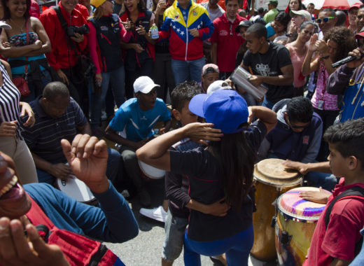 Seguidores del presidente Nicolás Maduro marcharon este jueves al palacio presidencial de Miraflores y hacia la Plaza O’Leary, en el centro de Caracas, retando a la oposición que cumplió con su palabra ante la mesa de diálogo y canceló la marcha que había convocado a la sede de gobierno.