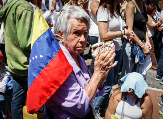Personas de la tercera edad y con discapacidad acompañaron a los más jóvenes en la movilización convocada este 12 de febrero en Caracas por el líder del Parlamento, Juan Guaidó. Banderas, vírgenes, pancartas con la imagen de José Gregorio Hernández y santos católicos se observaron en las manos de abuelos, quienes bendecían a los más jóvenes y exigían el ingreso de la ayuda humanitaria