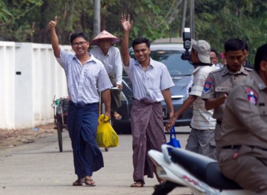 Dos periodistas de Reuters que fueron encarcelados en Myanmar por su cobertura de los abusos del Ejército de Myanmar contra musulmanes rohinyas, y que atrajeron la atención del mundo por el recorte de la libertad de prensa en el país, fueron liberados el martes tras un indulto presidencial masivo.