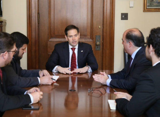 El ex presidente de la Asamblea Nacional Julio Borges y el coordinador político de Voluntad Popular, Carlos Vecchio, se reunieron este viernes con el senador de los Estados Unidos, Marco Rubio, a quien le plantearon la grave situación que vive Venezuela y pidieron apoyo para forzar unas elecciones libres y plurales en el país.
