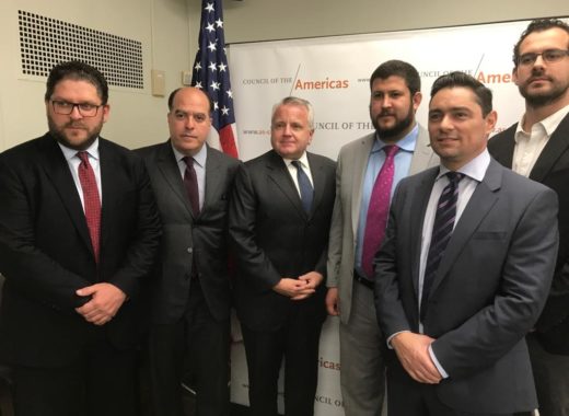 Como parte de la agenda del Frente Amplio Internacional en Washington, el ex presidente de la Asamblea Nacional, diputado Julio Borges, el coordinador nacional de Voluntad Popular, Carlos Vecchio y los ex alcaldes David Smolansky y Gustavo Marcano se reunieron con el secretario de Estado adjunto de Estados Unidos, John Sullivan, quien los recibió en su oficina, para abordar "la crisis política y electoral que padece el país".