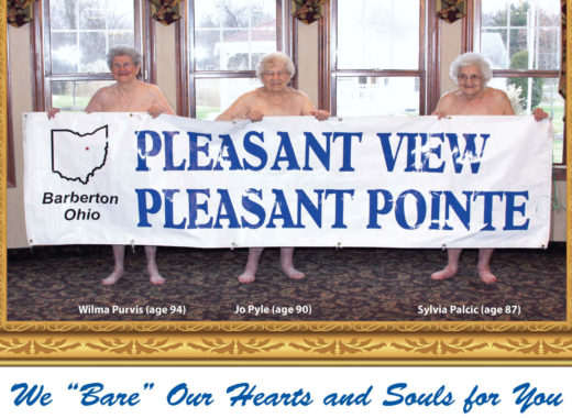 Algunos hombres y mujeres que viven en una casa de ancianos en Ohio decidieron posar con poca ropa para un calendario con el que buscan recaudar fondos para la caridad. Estas estrellas tienen entre 80 y 100 años, pero eso no les impidió mostrar un poco de piel. Miss Marzo, de 88 años, posa solo con un sombrero verde para el calendario de Pleasant Pointe Assisted Living. En la página central hay dos mujeres de 90 años que parecen jugar póker y tienen cartas gigantes colocadas estratégicamente. En febrero se ve a una sonriente Dottie Rutter en una tina, disfrutando de un baño entre burbujas y pétalos de flores, con chocolates y lencería cerca. Con 87 años, es la más joven de las tres modelos que lucen en la portada del calendario con los pies y hombros desnudos mientras sostienen una pancarta que promociona el asilo de Barberton y el centro de salud afiliado Pleasant View.