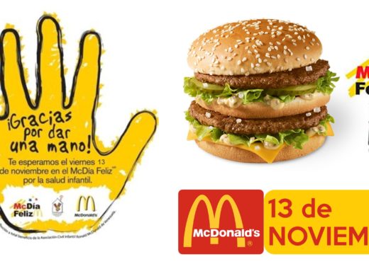 El próximo viernes 13 de noviembre se llevará a cabo la campaña solidaria más importante de McDonald´s. Durante ese día lo recaudado por la venta del Big Mac será a beneficio de la Asociación Civil Infantil Ronald McDonald de Venezuela