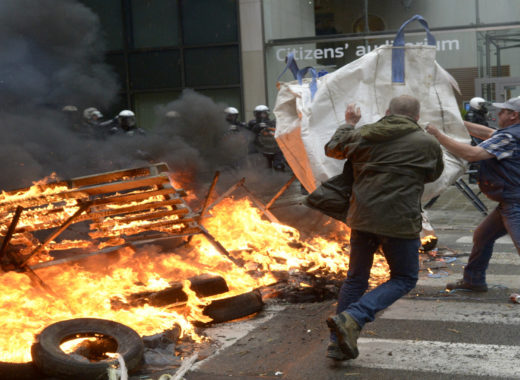 Miles de productores de leche y carne porcina de la Unión Europea (UE) protestaban este lunes con centenares de tractores en Bruselas por la grave crisis que golpea a esos sectores.