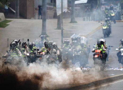 Luego de presentarse junto con Leopoldo López a tempranas horas de este martes en el distribuidor Altamira a la altura de la base aérea La Carlota, el presidente encargado de Venezuela, Juan Guaidó, se encaminó hacia la plaza Brión de Chacaíto, donde cuerpos de seguridad del gobierno de Nicolás Maduro reprimieron a los manifestantes.